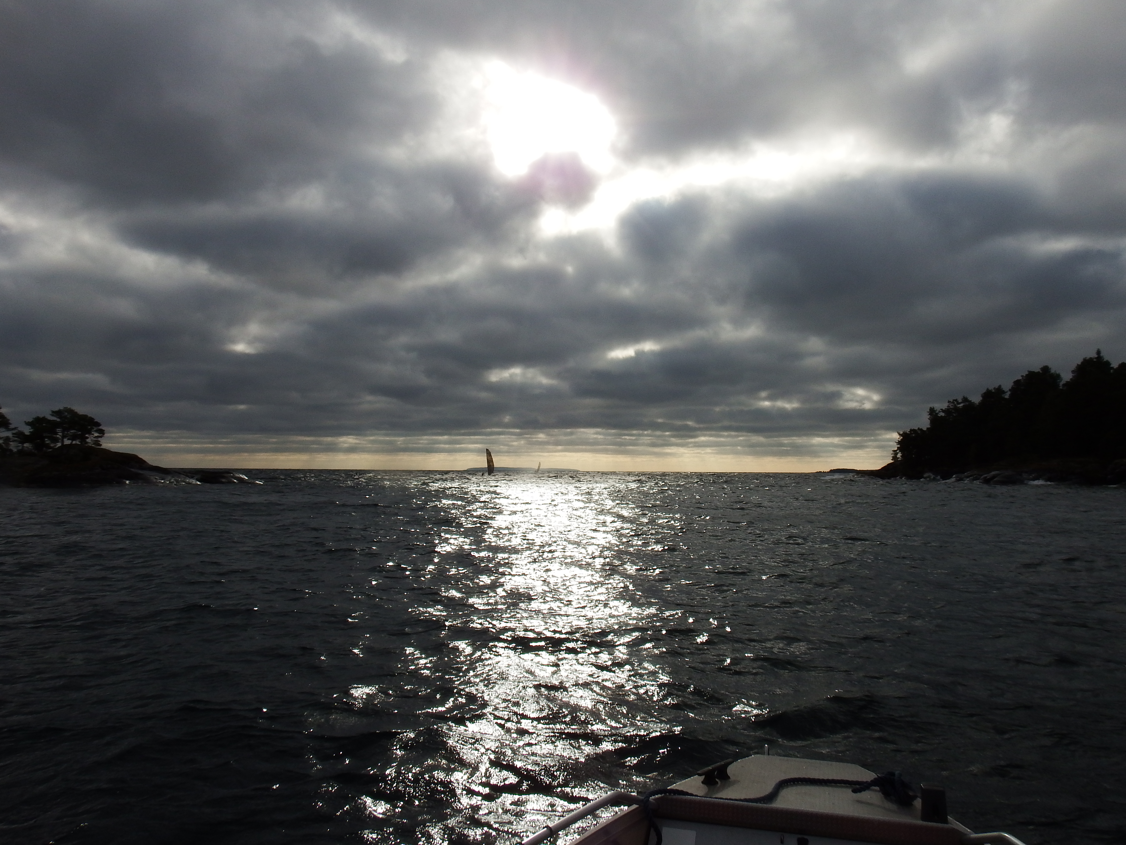 Vem riggar fortast? Erik och Peter. Alla fyra båtarna var riggade inom 17 minuter. Vilket är lite coolt. Erik hjälpte Leif med mastriggning men var ändå snabbast. Sedan följde en Klangahamn – Djäknabadet. Peter vann på målbild men vimsade ihop antalet fönster i tältet i Klangahamn. Sedan kom den stora utmaningen. Djäknasundet. I motvind, motström och mot alla odds. Alla båtar provade men ingen kom igenom. Så då fick man gå runt Ombo öar. En gropig och snabb resa.